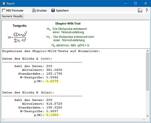 Als nächstes führen wir den Shapiro-Wilk-Normalverteilungstest durch. Dieser zeigt dass die Voraussetzung der Normalität nicht verletzt wird:
